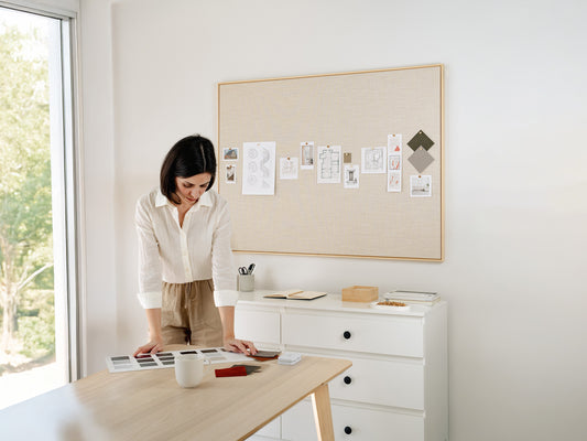 Modern Bulletin Board with Linen Cover and Wooden Frame