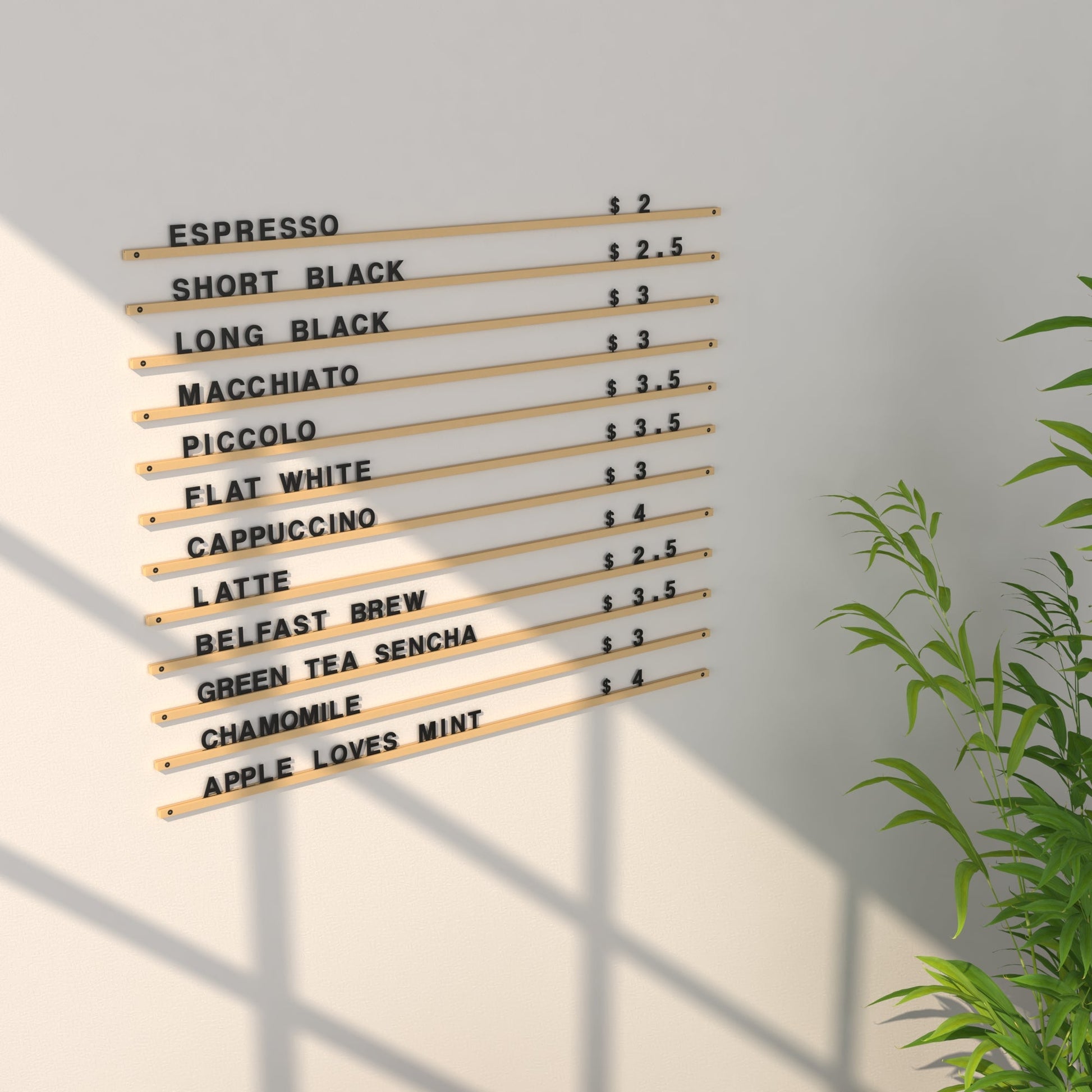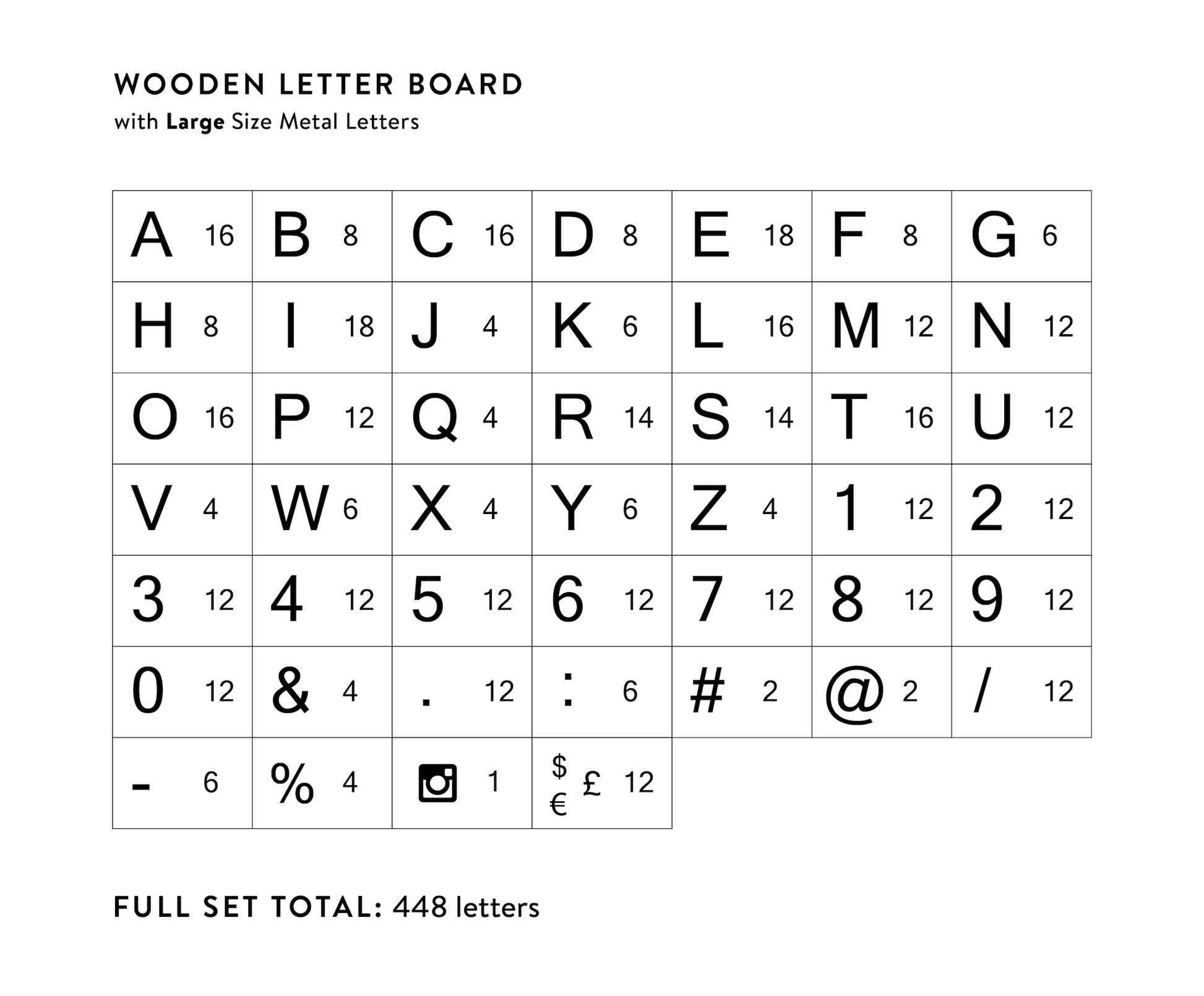 This is the listing for large metal letters of Press Letters Board only, without wooden rails. We created this listing for our customers intending to buy extra half or full set of large aluminum letters.