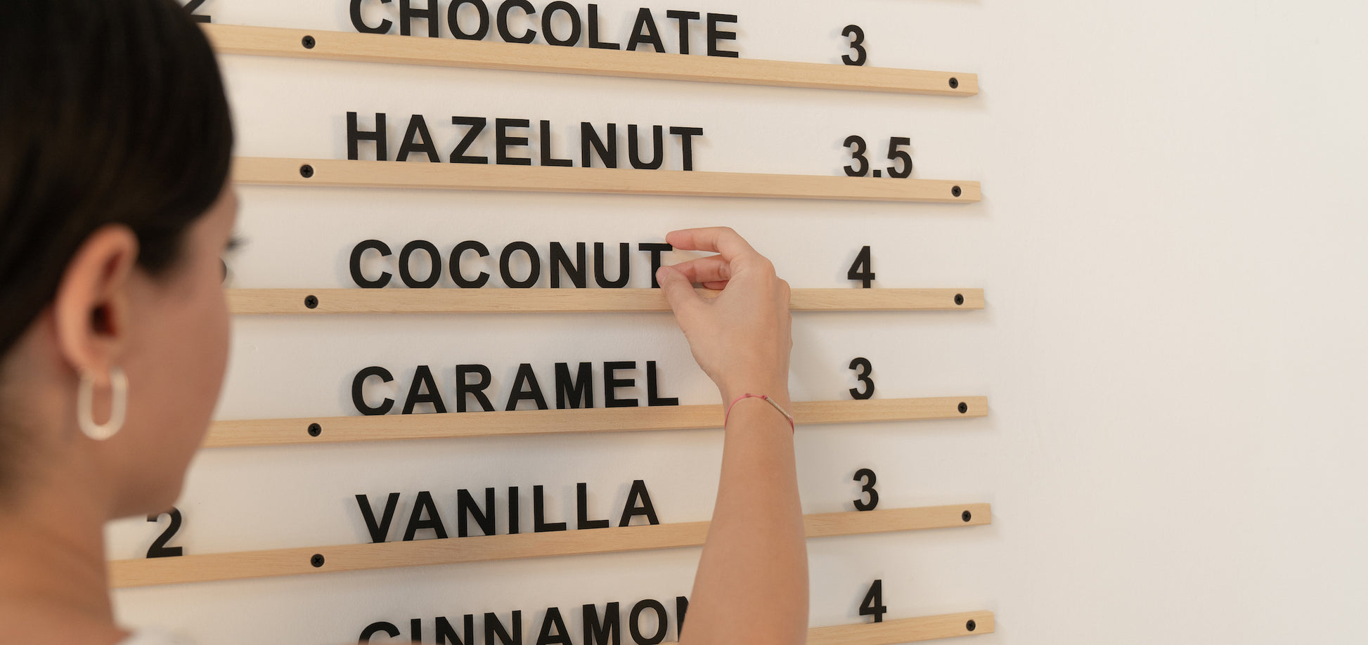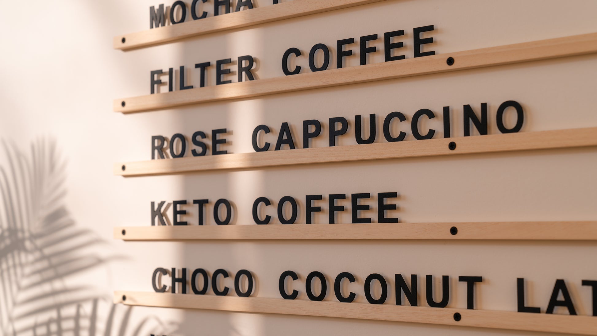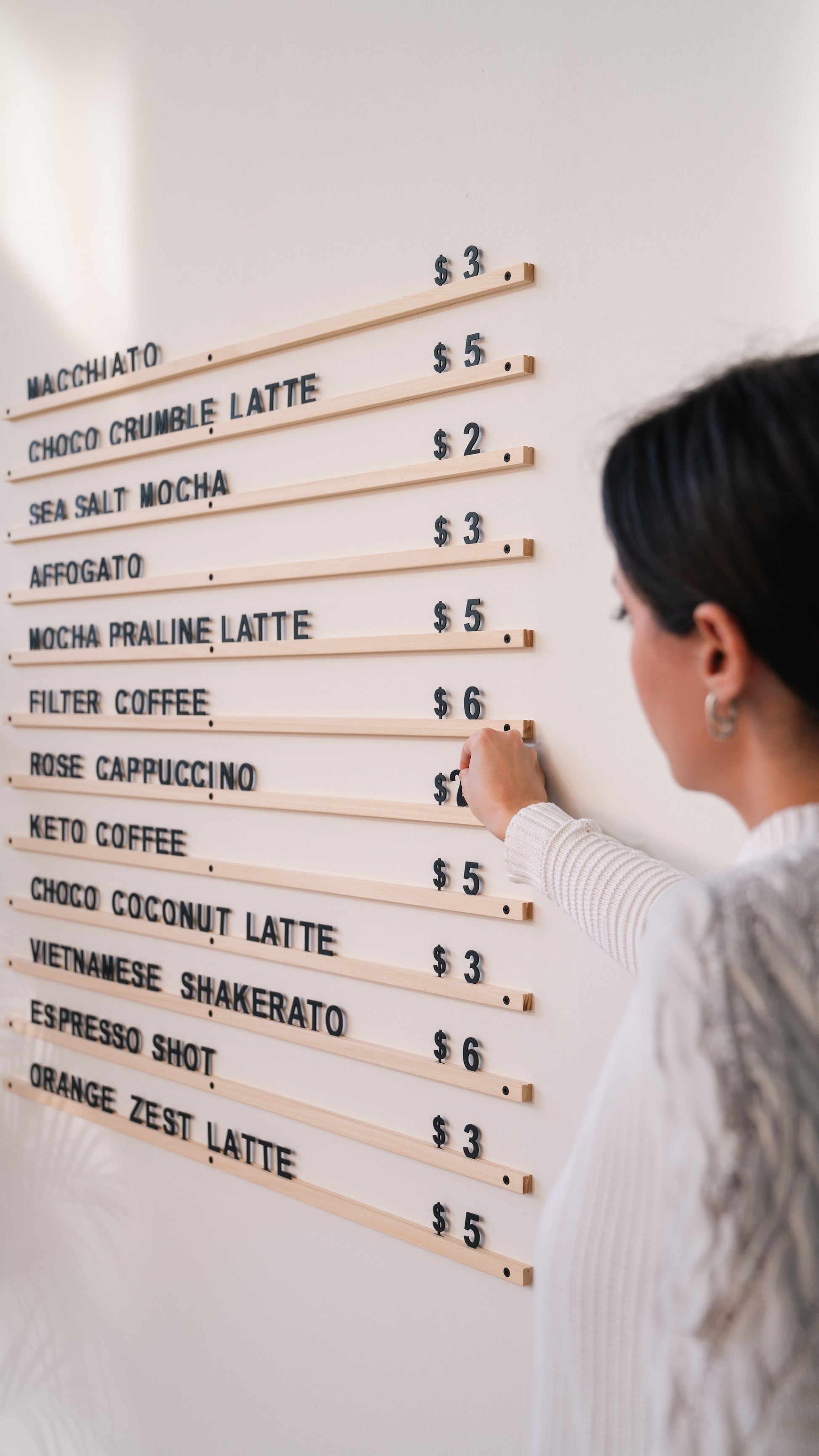 This changeable letter board is an elegant option for your coffee shop wall menu display.